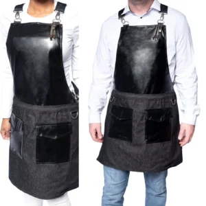 What makes the denim aprons reversible?