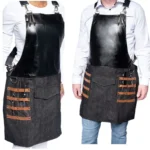 Short Water Proof Barber Hair Stylist Multi-purpose Crossback Black Jean Apron With Pockets (Petite)