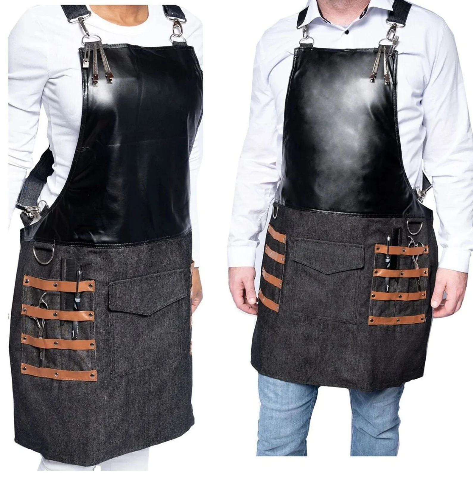 This reversible cross-back denim apron is the ultimate accessory for multitaskers, whether you’re a hair professional, gardener, chef, or simply looking to stay clean while working. Featuring hidden pockets on the back, it provides a secure location for your phone and money and a waterproof lining for extra protection. It’s excellent for cleaning tasks and perfect for anyone who needs a durable and functional apron.